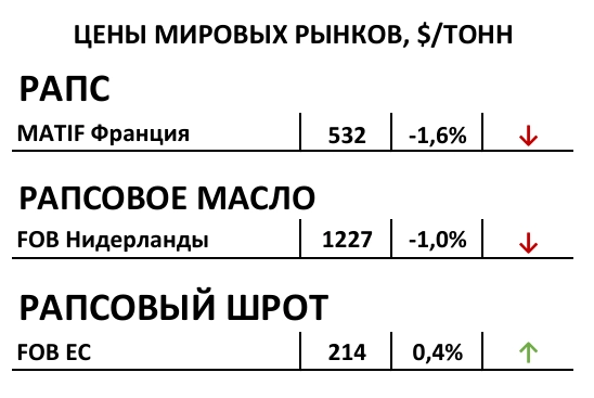Рапс (Биржа EuroNext) - 531,5 $/Т (-4,7%)