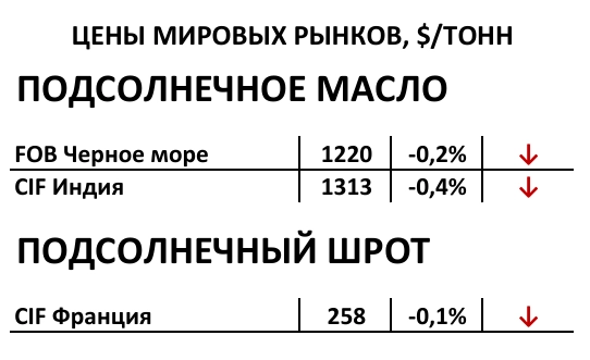 Рост курса доллара до 80 руб. оживил рынок подсолнечного масла. Экспортеры закупают малыми объемами по выгодным ценам, улучшая свою рентабельность. Экспортные цены остались без изменений. Важным фактором для мировой конъюнктуры весной 2026 года станет рекордный урожай подсолнечника в Аргентине. До этого времени экспорт из РФ и Украины останется ограниченным и, вероятно, ниже прошлогоднего.