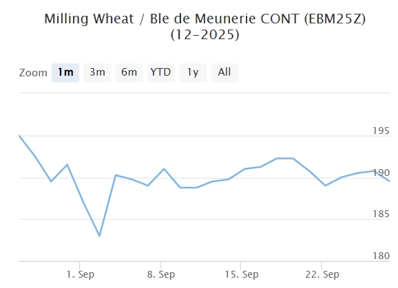 Matif MW 190,75 -> 189,5 (-0,7%)