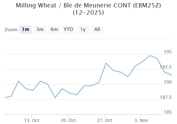 Matif MW 190,25 -> 191,5 (+0,6%)
