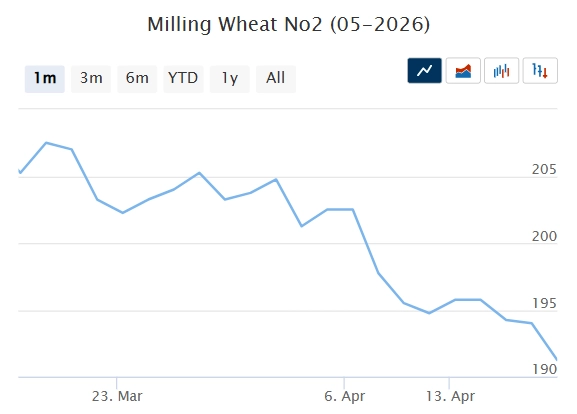 Matif MW 202,5 -> 191,25 (-5,1%)