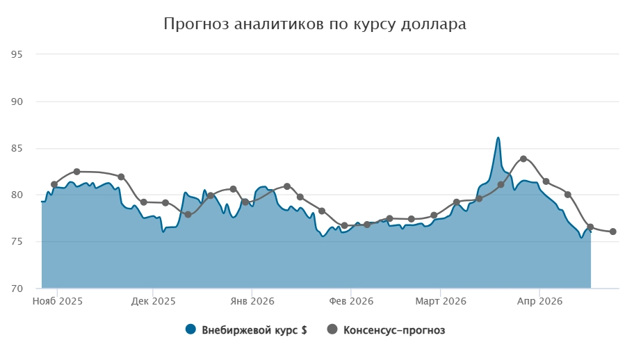 Основной фактор в пользу рубля — рост продаж валютной выручки экспортёрами перед налоговыми выплатами (28 апреля), объём которых может достичь 0,9 трлн руб. Высокие ставки и потребность в рублёвой ликвидности усиливают предложение валюты.