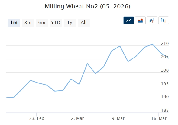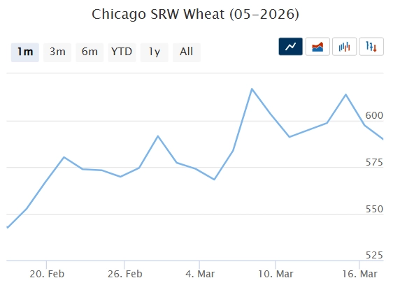 Фьючерсы на зерновые на биржах CBoT и MATIF в течение недели были волатильными и к концу снизились, во многом из-за фиксации прибыли, несмотря на достижение максимумов за 11–13 месяцев. Основным фактором оставалась эскалация конфликта на Ближнем Востоке, вызывающая опасения за поставки продовольствия, энергии и удобрений. Давление также оказал мартовский отчет USDA с повышением прогнозов производства и торговли зерном.