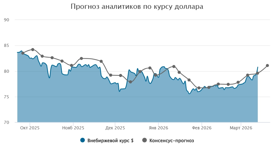 На прошлой неделе рубль заметно ослаб: доллар вырос до 80,78 руб., юань — до 11,65 руб. Основные причины — снижение предложения валюты со стороны экспортеров и сокращение продаж валюты Банком России. Дополнительное давление оказывают дефицит юаневой ликвидности, приостановка интервенций Минфина и ожидания снижения ключевой ставки. На неделе 16–20 марта рубль может продолжить ослабление и достигнуть 81–82 руб. за доллар.
